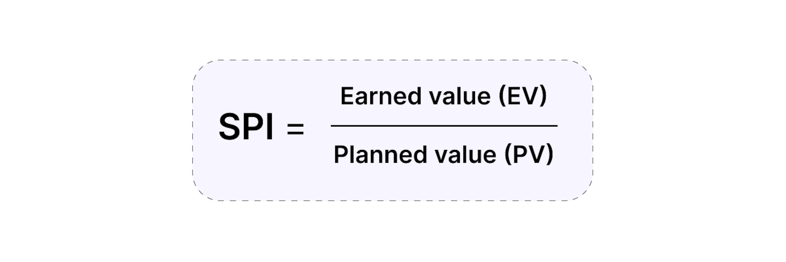 - SPI is calculated as earned value (EV) divided by planned value (PV), with 1.0 indicating on-schedule performance, above 1.0 ahead of schedule, and below 1.0 behind schedule.