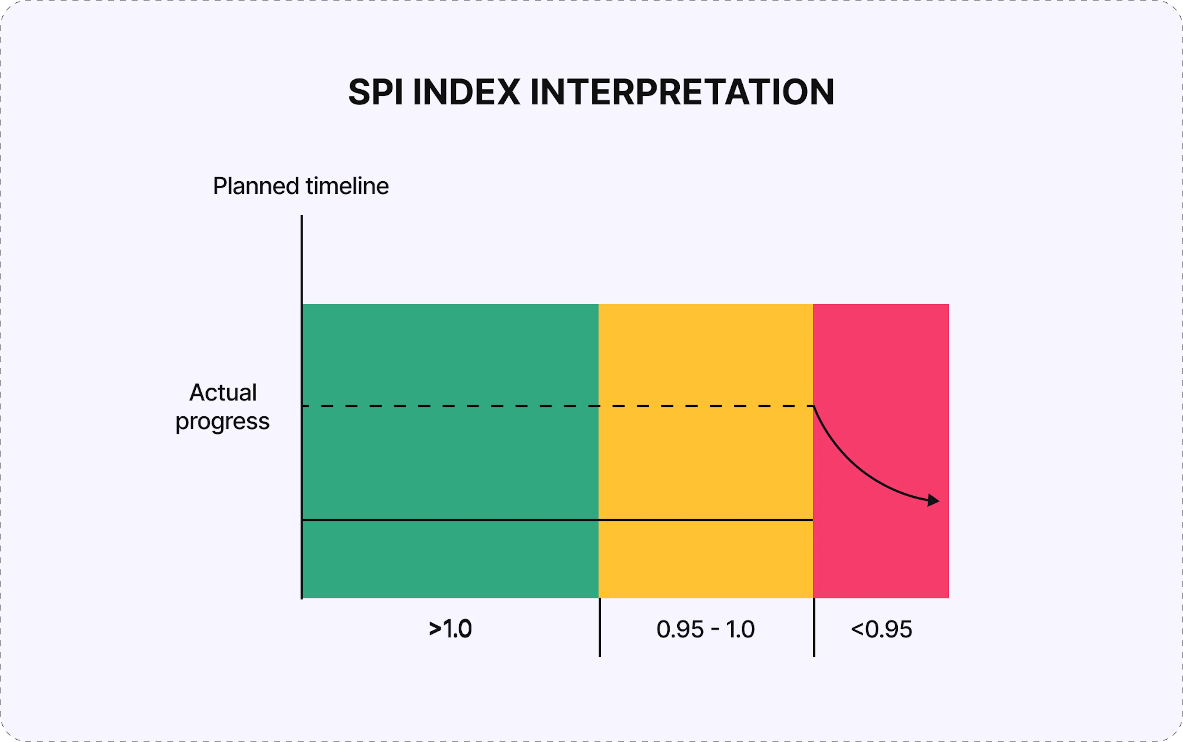 The SPI index tells you how far ahead or behind schedule your project is, and by what factor, based on completed work value. Interpreting it correctly is key: