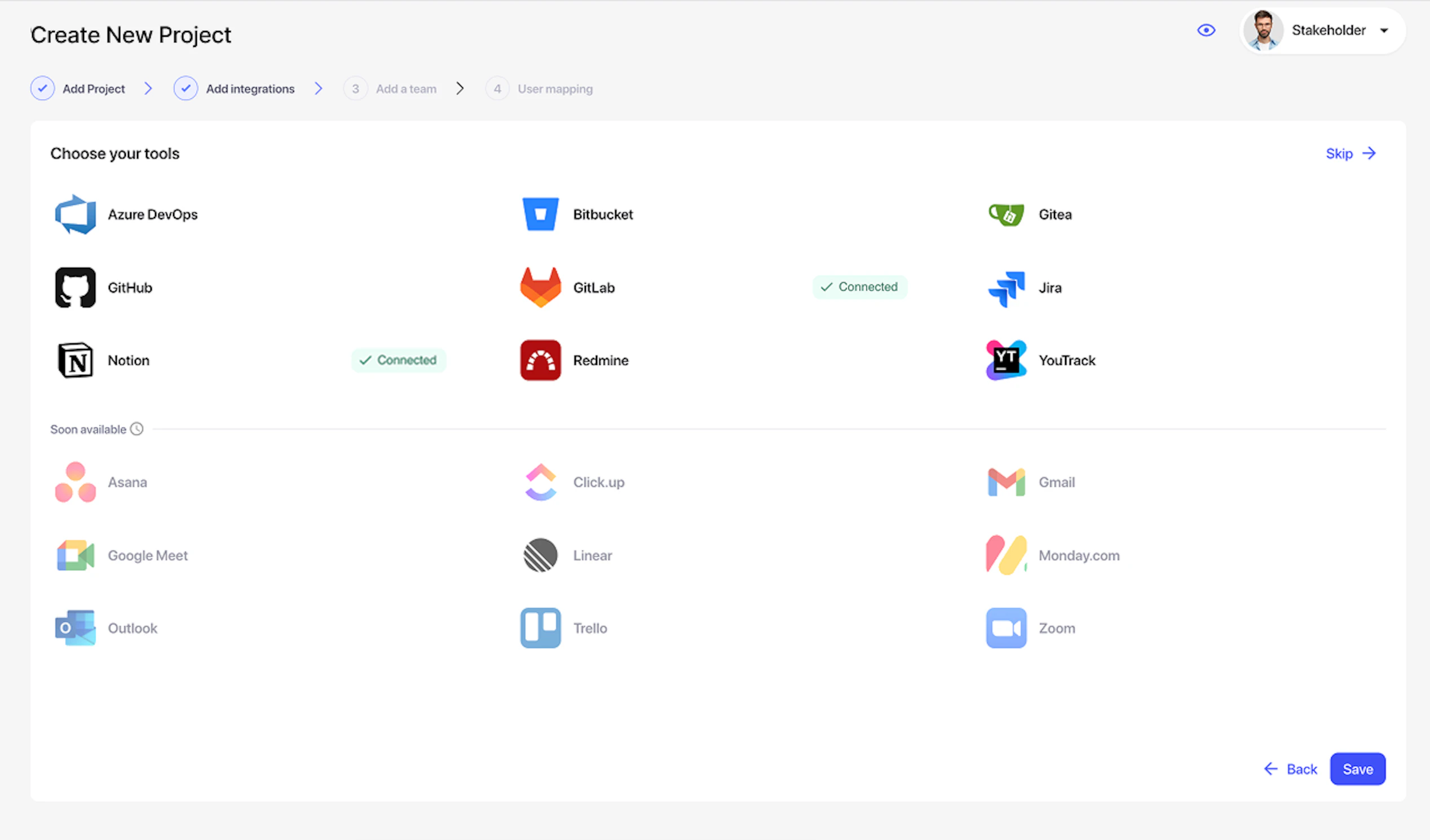 Step 5 – Updated account mapping interface from trackers and repositories, excluding already mapped users and auto-filling data (if previously configured).